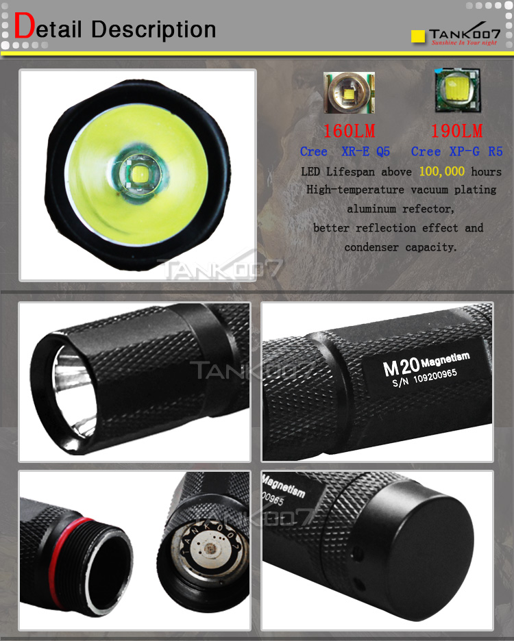 1 x TANK007 M20 Q5 led flashlight one working mode (without battery)